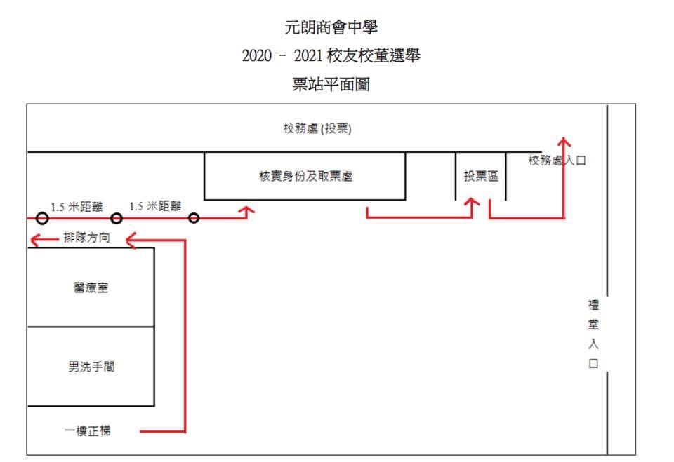 - 除進行投票外,任何候選人或投票校友都不得進入核實身份及取票處、投票區及校務處範圍。