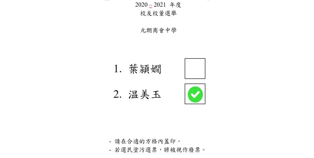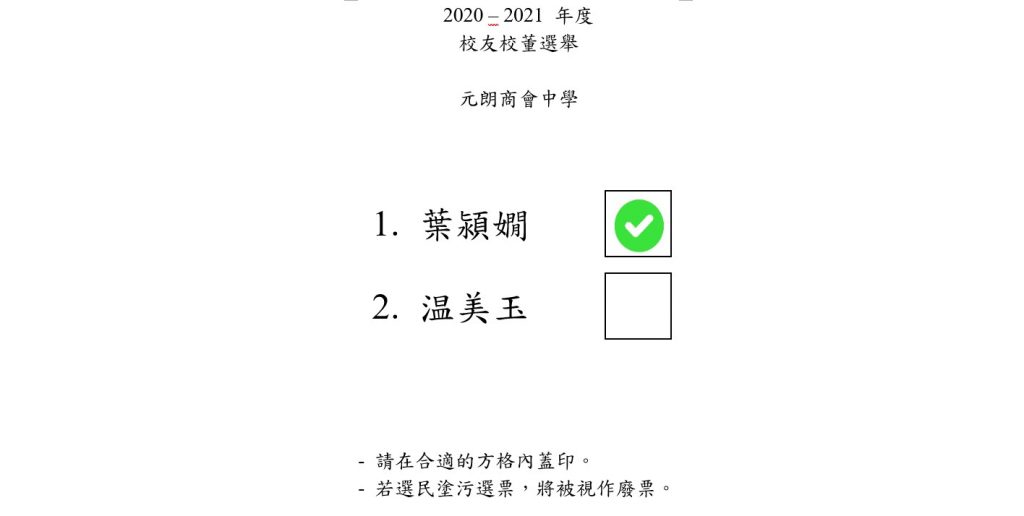 2020 – 2021 元朗商會中學校友校董選舉授權表格確認