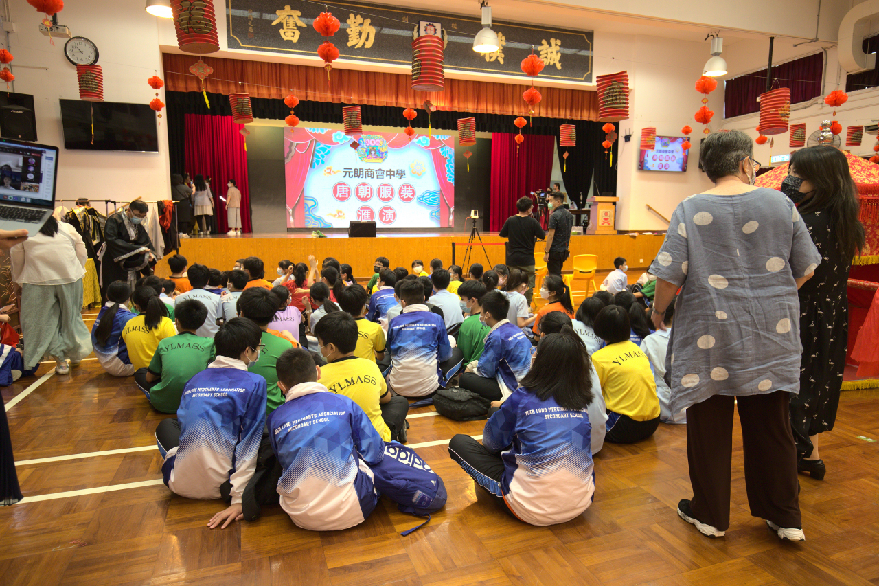Through the "Costume Show", Form one and Form two students have learnt about the women's clothing and makeup in the Tang Dynasty, enabling them to understand the politics and social status of women in the Tang Dynasty. In addition, our school hall was decorated like an ancient market, allowing students to participate in feminine arts, throwing pots, calligraphy, wear ancient costumes and enjoy Chinese lute performances, giving them to feel like they have travelled back to ancient times to experience and appreciate traditional Chinese culture.