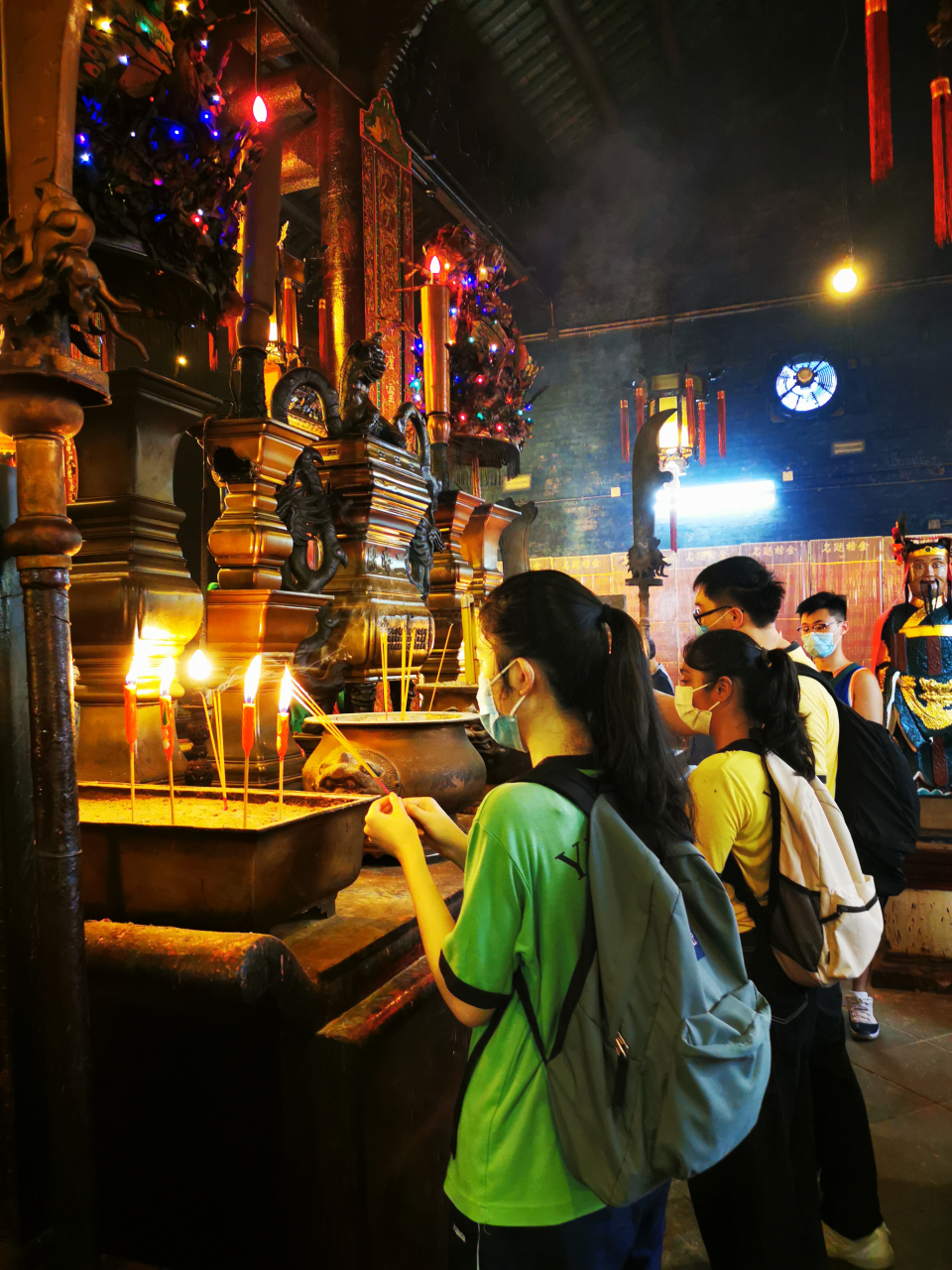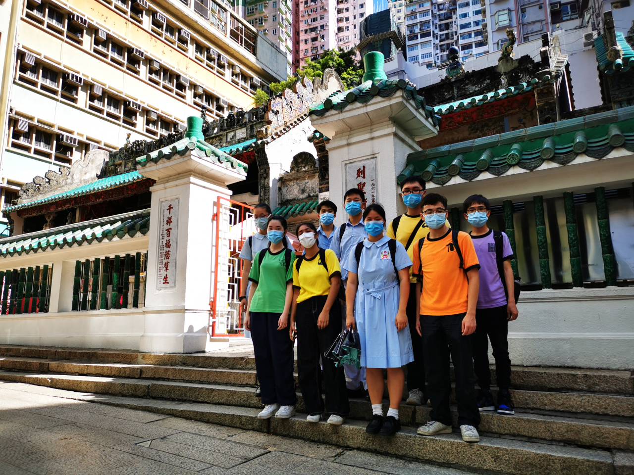 The History Department organized a field trip called “Local Chinese and the Development of Hong Kong”, enabling students to explore the lives of Hong Kongers in the past by visiting Sheung Wan and Central during the supplementary lessons in summer holiday. 10 Form 5 students started off their trip at the Western Market, passing through Bonham Street, Heung Hing Lane, Procession Street and reached Hollywood Road Park, which was the destination. Students also grasped the opportunity to pray for their success in the coming DSE in Man Mo Temple! Having taken the tram back to Central Pier and had a ride on the Ferris Wheel to have a close glimpse of Victoria Harbour, students had a fulfilling afternoon.