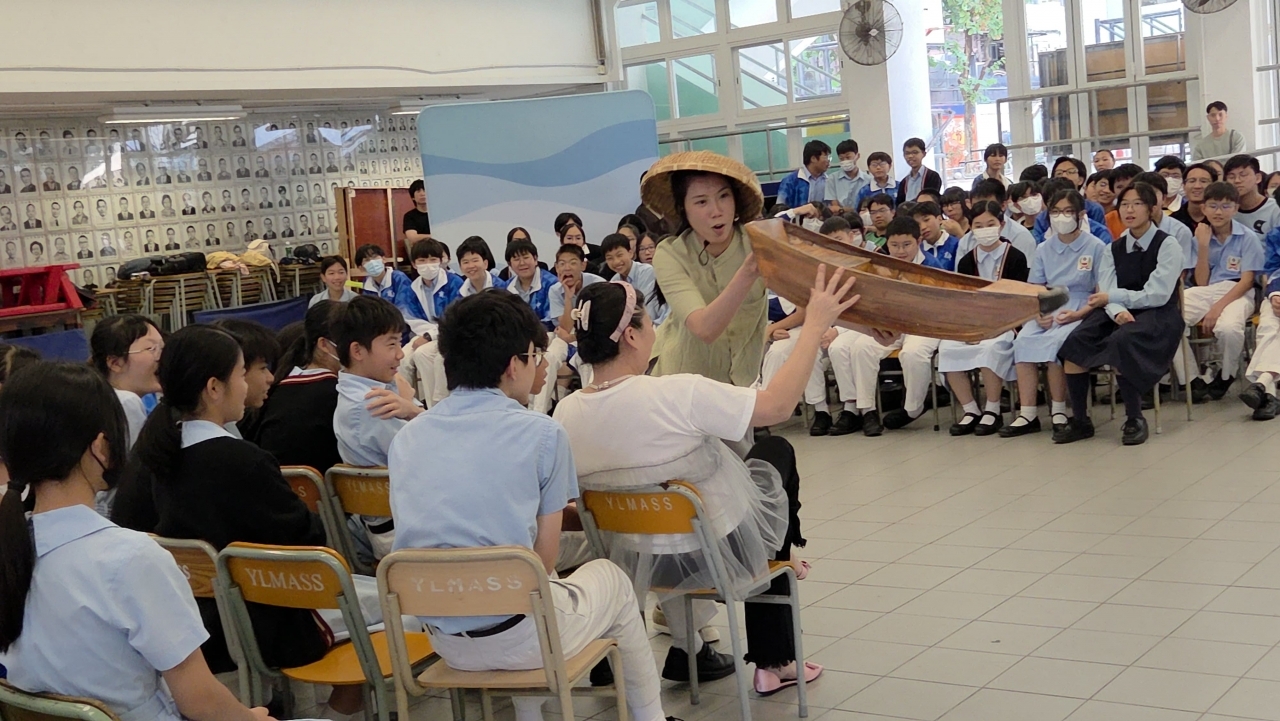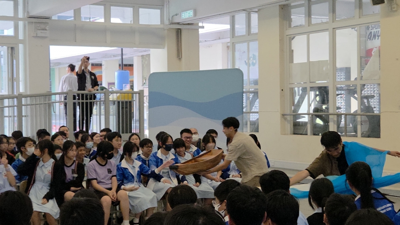 To promote Chinese culture and align with this year’s Chinese subject theme on Intangible Cultural Heritage, Chinese Department organized a special cultural experience for Secondary 2 and 3 students on November 18. Students attended Journey of the Fisherman, an interactive theater performance hosted by the Tai O Cultural Association.Through vivid puppetry, immersive sound effects, and lifelike props, students were transported into the traditional sampan lifestyle of Tai O fishermen. The performance not only showcased the unique cultural landscape and historical evolution of Tai O, but also conveyed the wisdom and resilience embedded in Chinese fishing traditions.The atmosphere was lively and engaging, with students enthusiastically interacting with giant orange fish and octopus puppets. Laughter and awe filled the hall as students experienced a multisensory journey that sparked reflection on cultural identity and heritage.This event deepened students’ understanding of local intangible cultural heritage and inspired a greater sense of appreciation and responsibility toward preserving Chinese traditions.