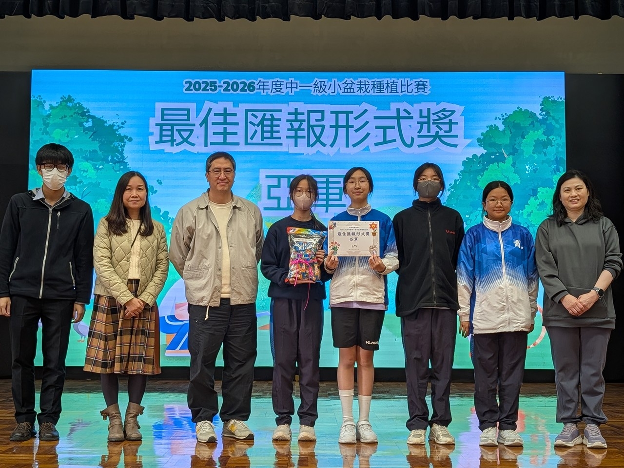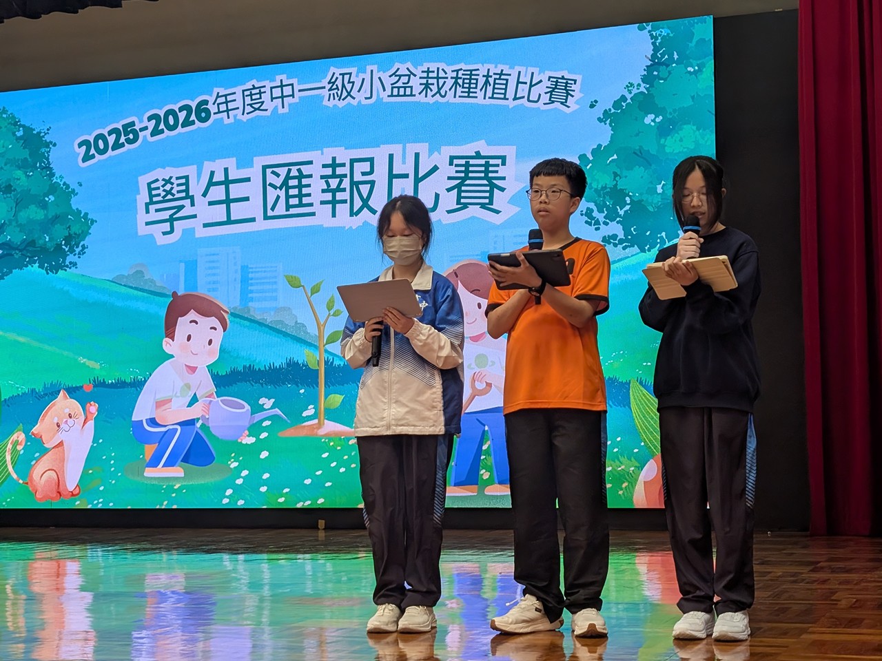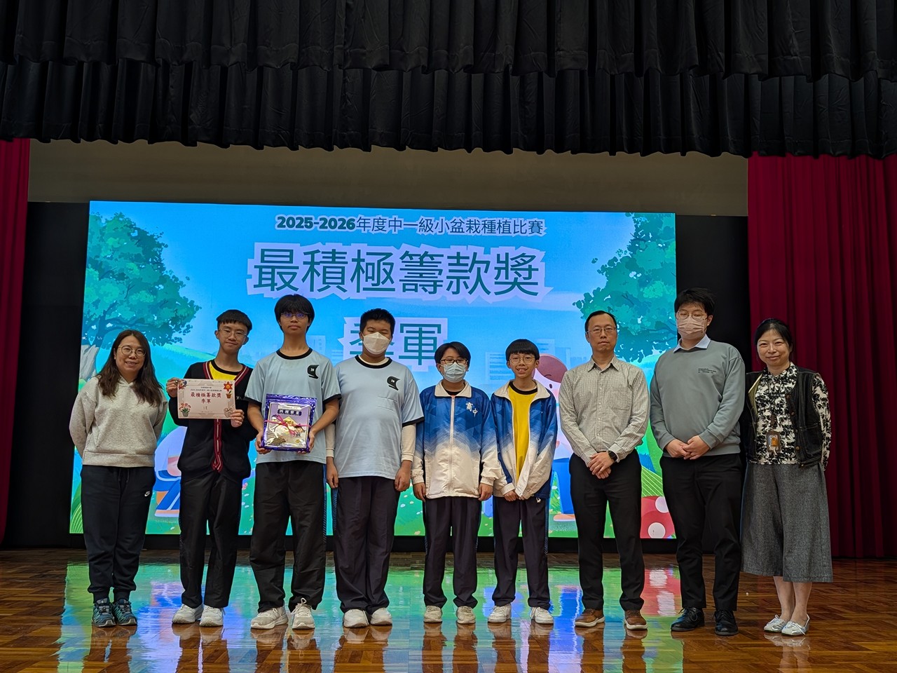 The Counselling Team, Parent-Teacher Association, Moral and Civic Education Team, and Citizenship, Economics and Society department jointly organised the S1 Charity Potted Plant Sale Presentation Competition on 13 March 2026. The activity aimed to enable S1 students to appreciate the meaning of life through cultivating mini potted plants, while learning basic concepts of business operation and management through a charity sale. On the day of the competition, students from each S1 class applied SWOT analysis to examine the strengths, weaknesses, opportunities and threats of their planting projects. They shared their planting experiences in various creative formats, demonstrating the self-discipline and perseverance of our school community.
