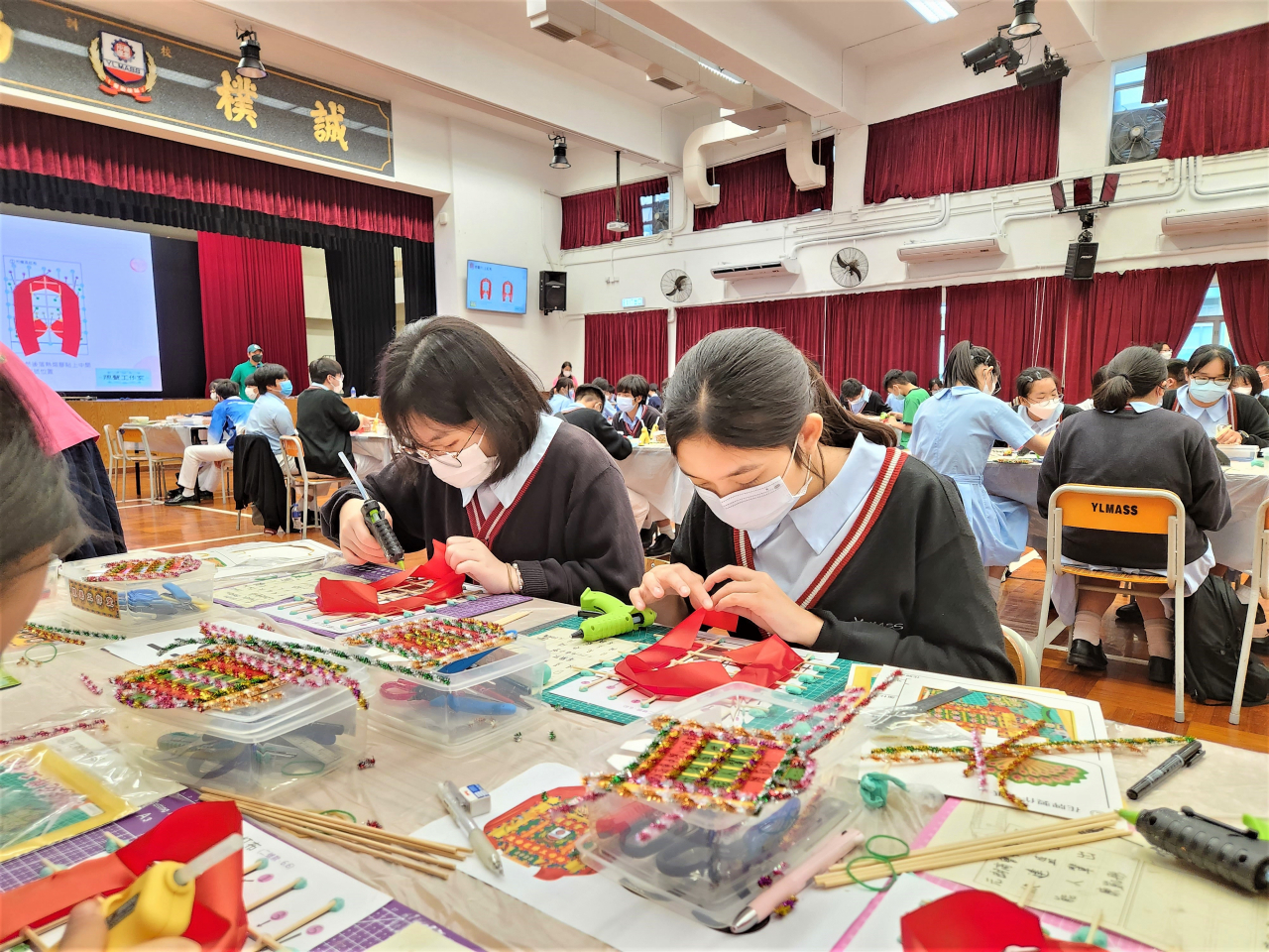 Students learn about the local intangible cultural heritage and experience making mini flower plaques
