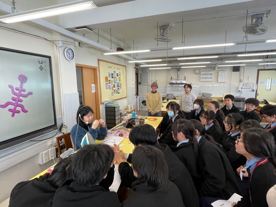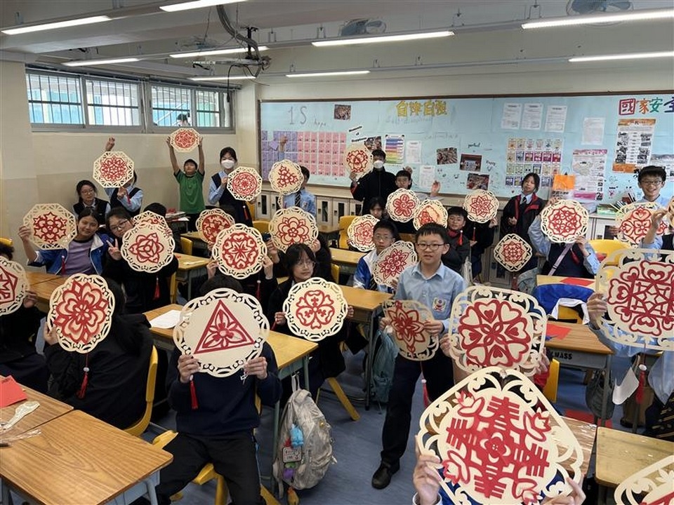 This cross-disciplinary event allowed students to experience culture through movement and craftsmanship. With the support of the PE Department, Form 1 students participated in the energetic "Pixiu Dance," experiencing traditional martial arts movements. In collaboration with the HE Department, students in Class 3M joined the "Flower Button Workshop," while Form 1 students participated in the "Mini Flower Plaque Workshop," learning delicate structural arts from heritage masters. On February 13, the Music Department organized an appreciation session for Form 4 students, showcasing various traditional Chinese instruments and repertoires to cultivate their interest in classical melodies.