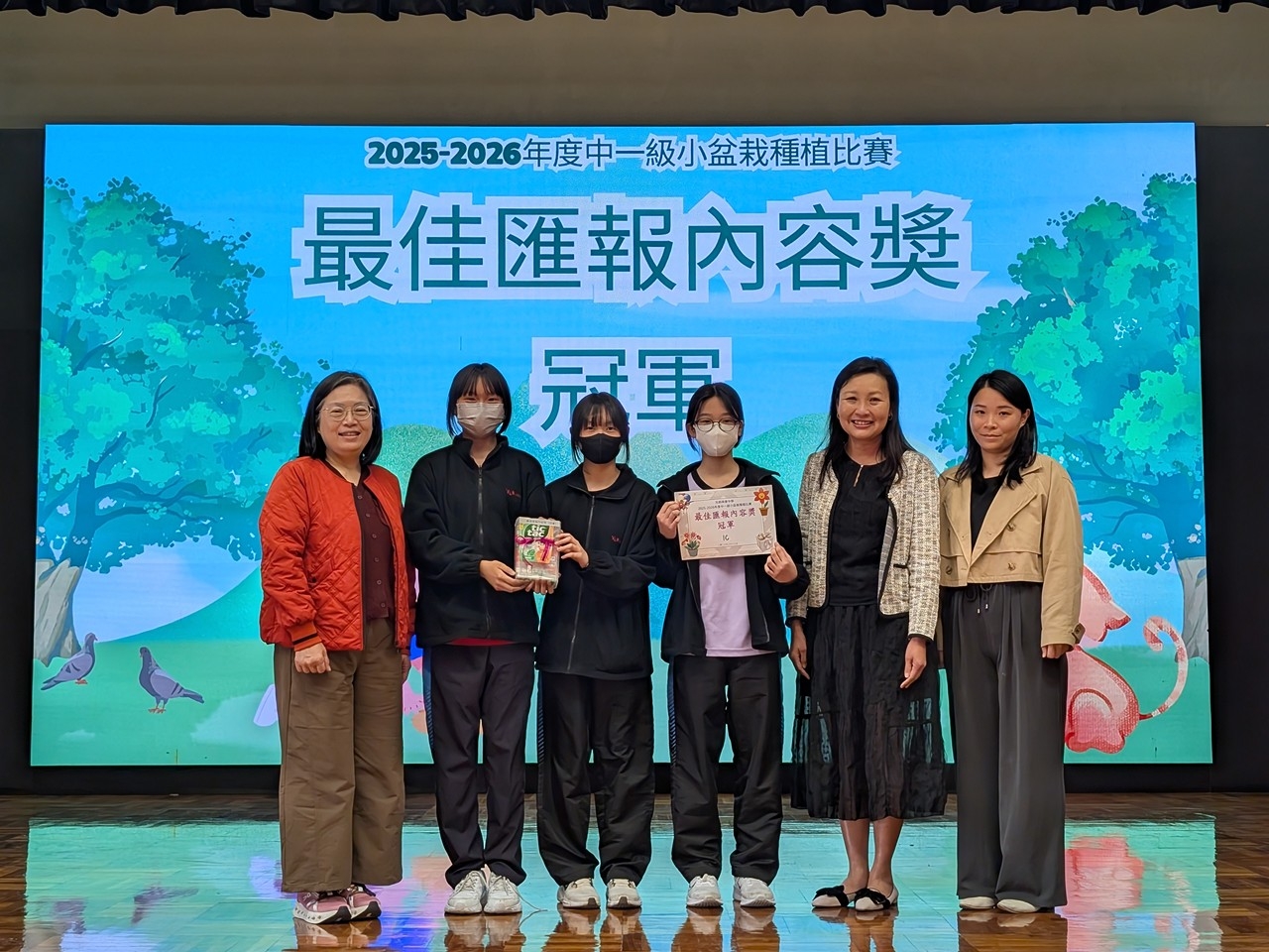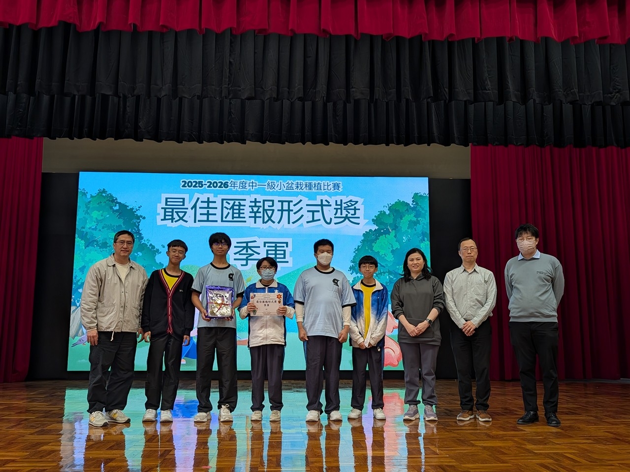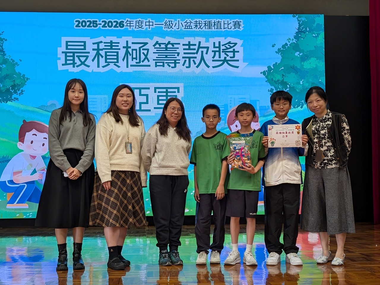 The Counselling Team, Parent-Teacher Association, Moral and Civic Education Team, and Citizenship, Economics and Society department jointly organised the S1 Charity Potted Plant Sale Presentation Competition on 13 March 2026. The activity aimed to enable S1 students to appreciate the meaning of life through cultivating mini potted plants, while learning basic concepts of business operation and management through a charity sale. On the day of the competition, students from each S1 class applied SWOT analysis to examine the strengths, weaknesses, opportunities and threats of their planting projects. They shared their planting experiences in various creative formats, demonstrating the self-discipline and perseverance of our school community.