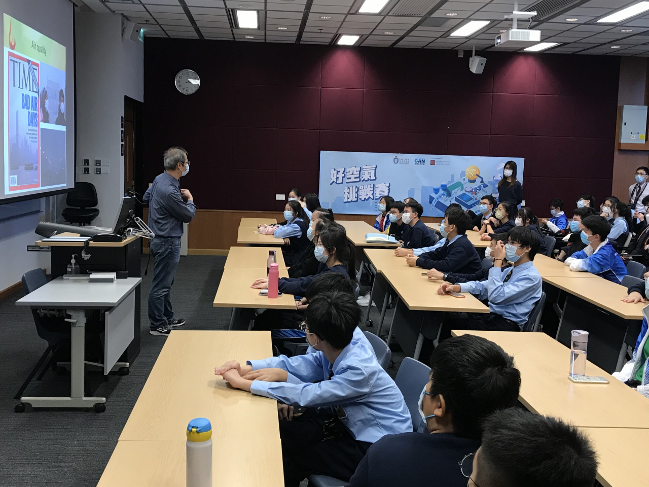 本校科學科於2021年12月10日組織了為期半天的香港科技大學參觀。5E, 2M及2E學生從香港科技大學環境學部劉培生教授主持的普及科學講座中了解香港過去和現在的空氣質素。 除了普及科學講座外,學生可以了解更多最新檢測空氣質素的方法。 是次活動中,學生們除了重溫他們在科學課堂知識,亦了解到幫助解決空氣污染問題的創新技術,這有助他們在社區中培養環保意識。