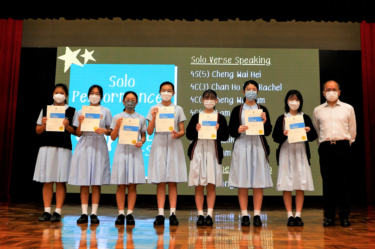 Our gratitude must go to our teachers for their continuing guidance and dedication in helping students to prepare for the video performance. we celebrated the students’ outstanding achievements in the 73rd Hong Kong Schools English Speech Festival (2021). More students have participated in the competition than ever this year. With the great effort and persistent practice, three students were awarded with the second prize in Solo Verse Speaking, three students with the third prize, and 28 students with merit.
