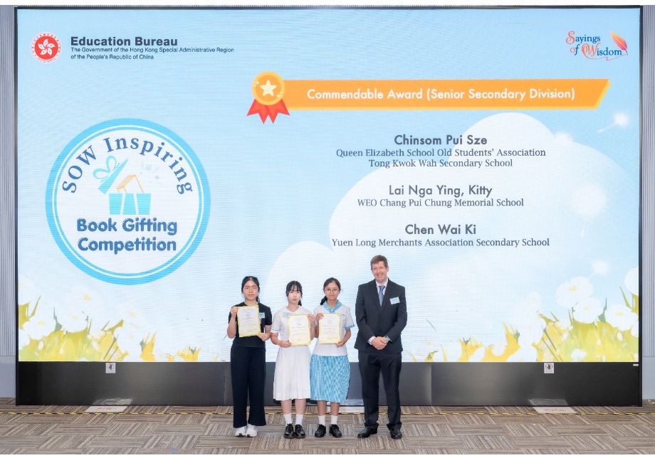 5M 陳瑋琪同學在教育局主辦的 「SOW Inspiring” Book Gifting Competition」中榮獲高中組 優異獎。