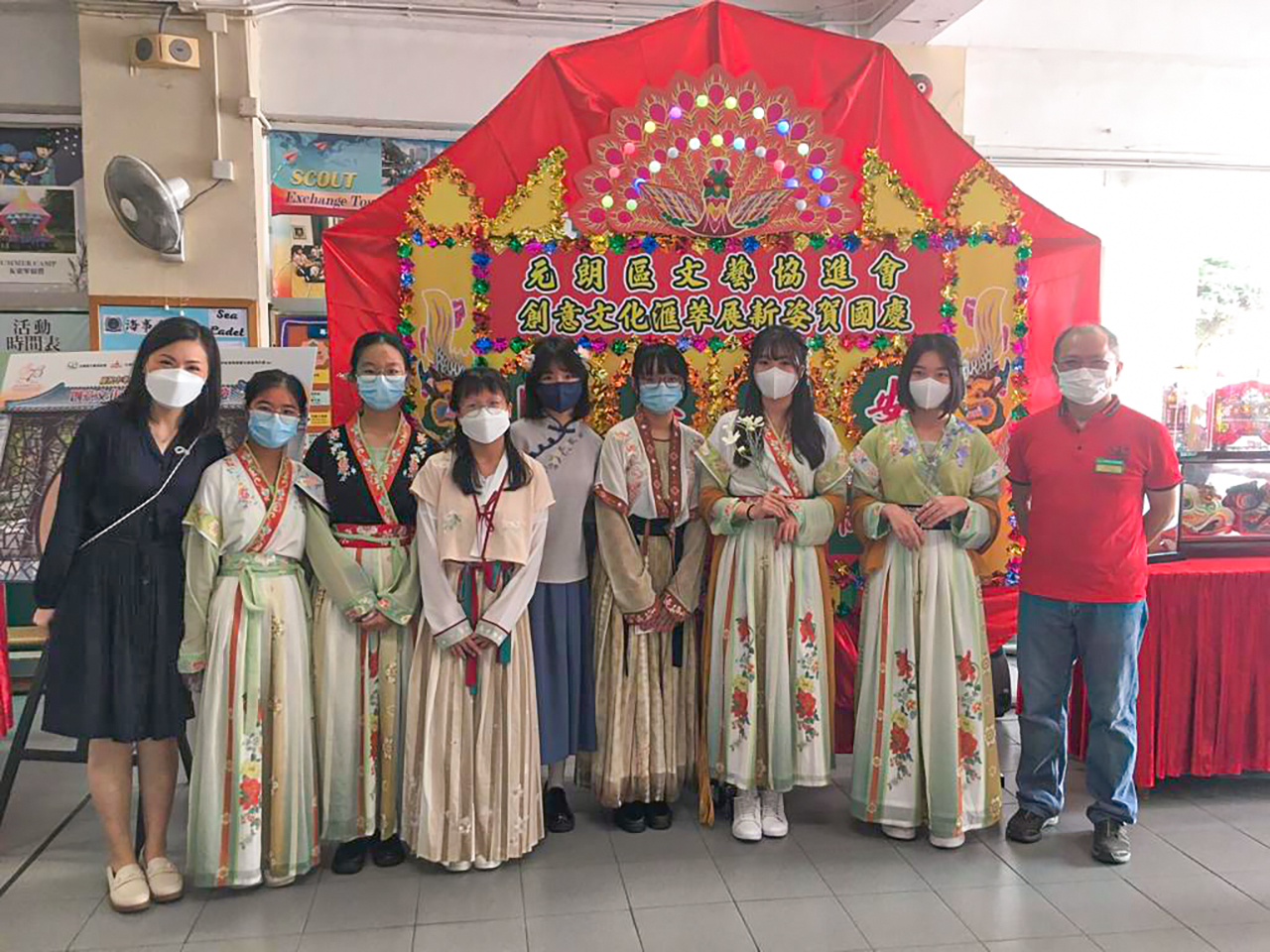 元朗區文藝協進會舉辦了慶祝中華人民共和國成立73週年的活動,我校學生以義工身份參加,他們身穿華美的中國服飾向來賓介紹展覽中的中國書畫,他們都十分享受,沉浸在當中的豐富中國文化。